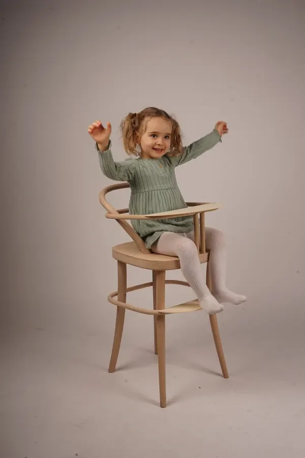 Dětská jídelní židlička je inspirována ikonickou židlí č. 14 od firmy TON, využívá díly poskytnuté touto firmou. Je vyrobena z ohýbaného bukového dřeva a překližek, přičemž klade důraz na bezpečnost i funkčnost.
