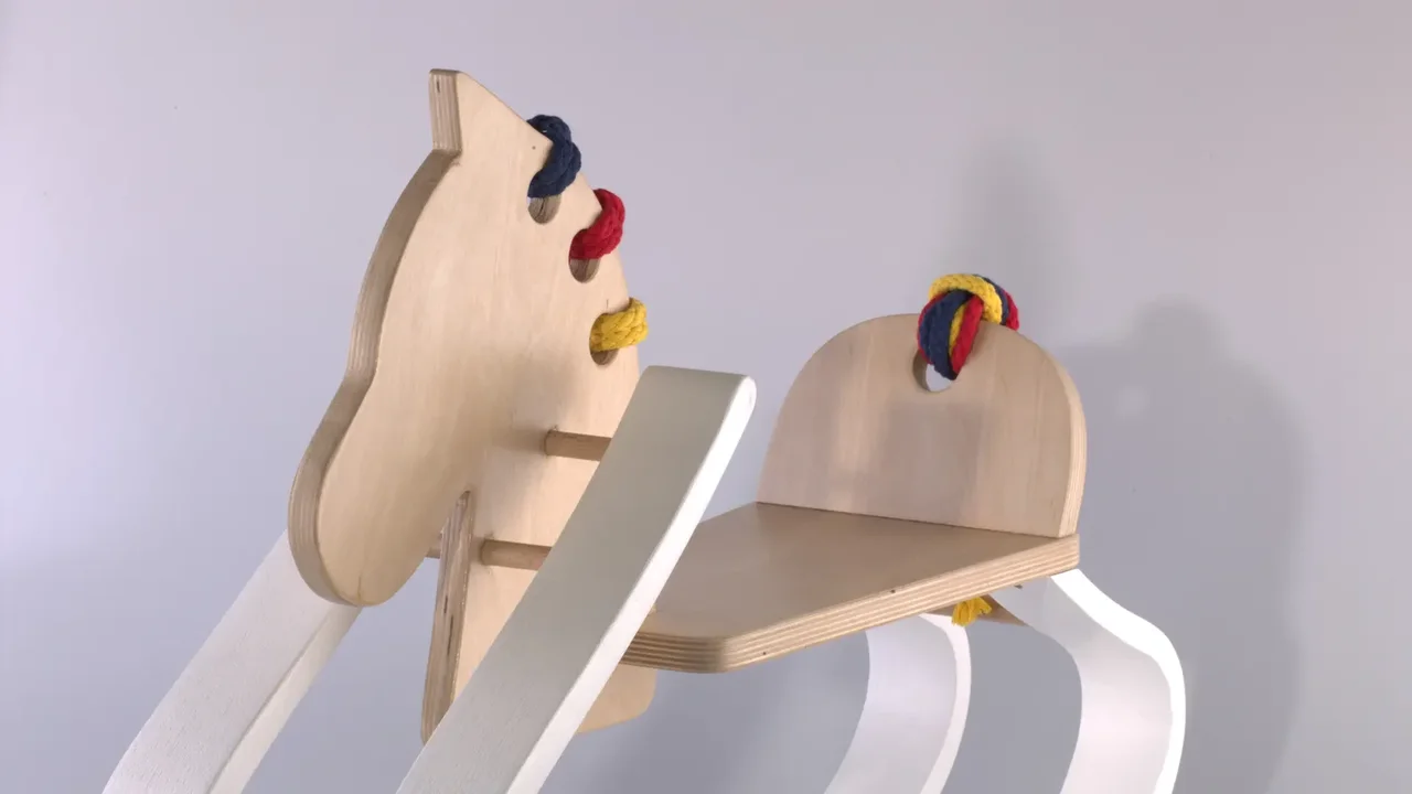 Houpací koník vznikl v rámci zadání využít vyřazené prvky z výroby firmy TON. Autorka ze dvou prvků z ohýbaného buku vytvořila „nohy“ koníka. Až na nohy je koník ponechán v přírodní barvě dřeva, pro kontrast má místo hřívy a ohonu zapletené barevné provázky. Výrobek je určen pro děti ve věku 2 až 4 let.