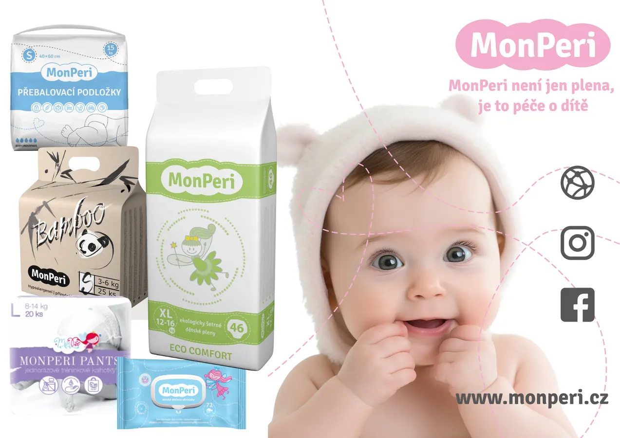MonPeri jsou ekologicky šetrné dětské pleny prémiové kvality. Vyrábí se z udržitelných zdrojů a neobsahují žádné škodliviny ani chemické látky, které by mohly dětskou pokožku dráždit.